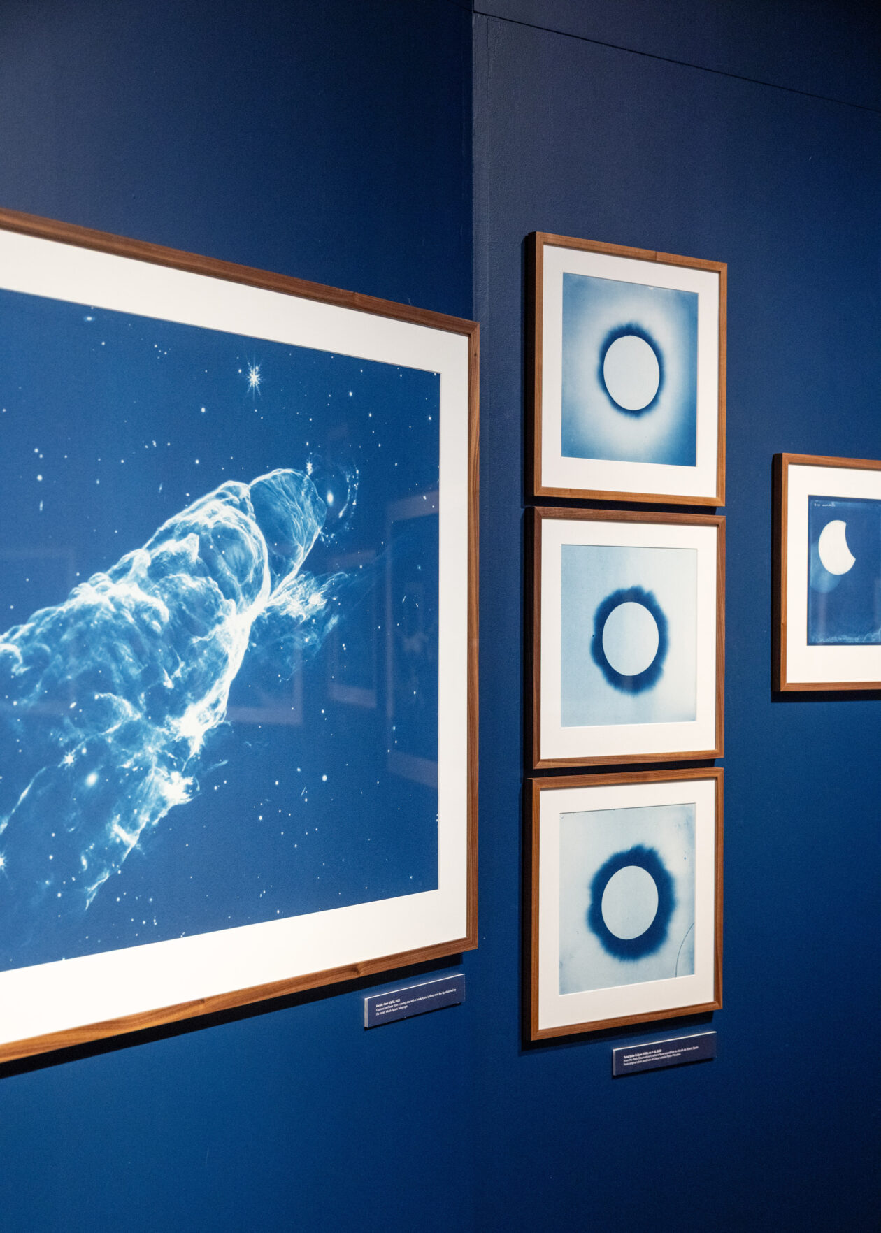 Experience captivating, deep-blue photographic works created with cyanotype – a unique technique invented by astronomer John Herschel, where iron salts mixed to result in UV-sensitive solutions, and sunlight combine to form images in characteristic shades of blue.