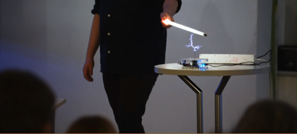 During the evening, we will also be visited by physicist Jonathan Gammeltoft, who will present a spectacular science light show. Through a range of experiments, he explores the properties of light – from colors and rainbows to lasers and impressive bolts of lightning from a Tesla coil.